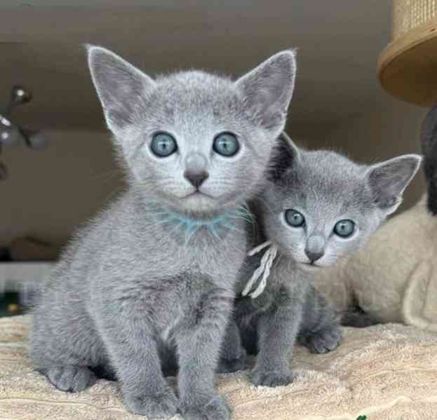Dvě roztomilá koťátka ruské modré. Jsou dobře vycvičená a milují hraní s dětmi a dalšími domácími mazlíčky. Jsou veterinární kontrolována a doručí se spolu s veterinárními doklady a veterinární knížkou. V případě zájmu zašlete fotografii kočky.
