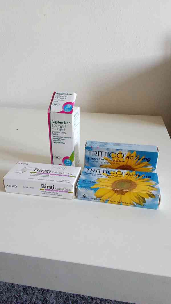 AKTUÁLNĚ nepotřebuji. Pouze na LÉKAŘSKÝ předpis. Algifen, kapky, dvě balení antikoncepce Birgi, Tritico, dvě balení.
