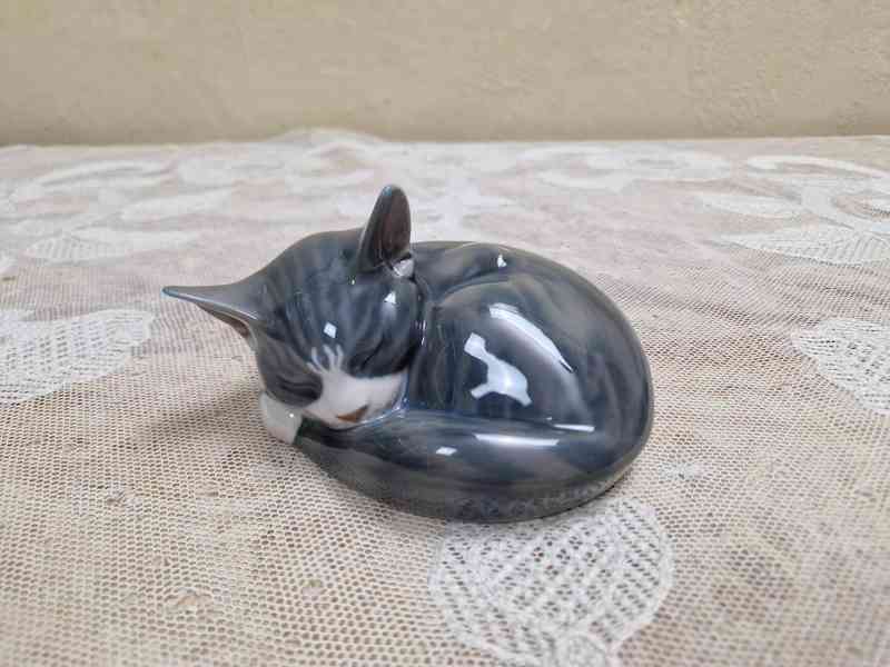 Porcelánová Plastika ležící Kočka - Kodaň, Dánsko, kolem pol. 20 stol.