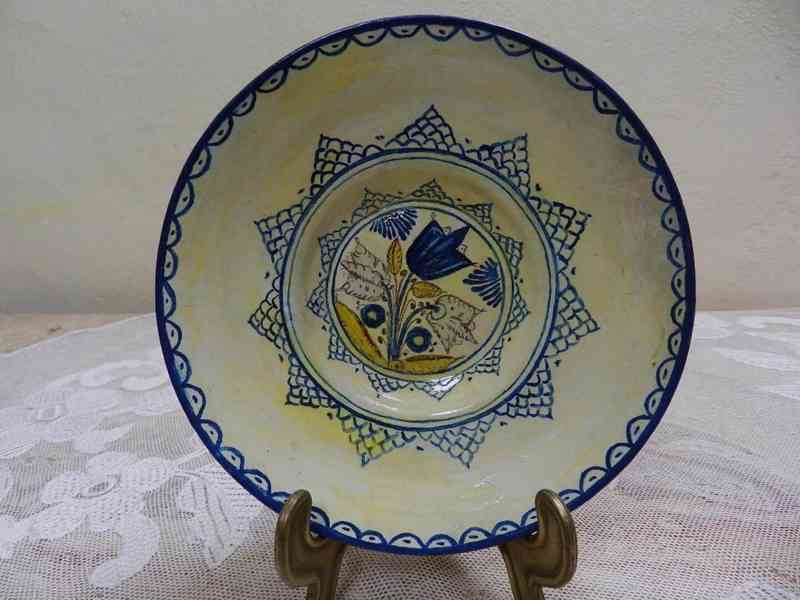 Zajímavý velmi starý keramický Talíř, ruční malba - Hvězdlice, kolem 1700.