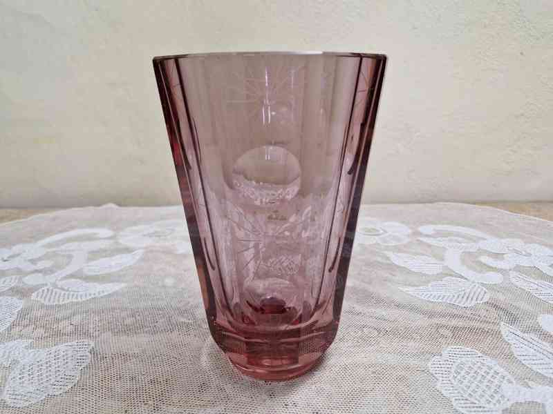 Masivní autorská broušená váza z rosalinového skla - Čechy, 2 pol. 20 stol.