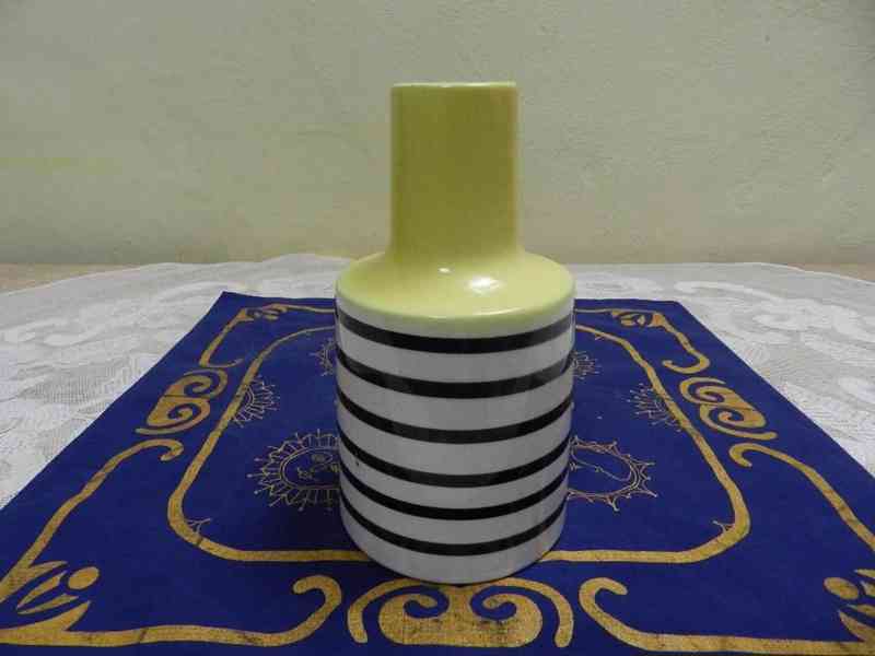 Stylová keramická Váza s pruhy, barva černobílá se žlutou, bruselský Styl - Kravsko, 50 léta 20 stol.