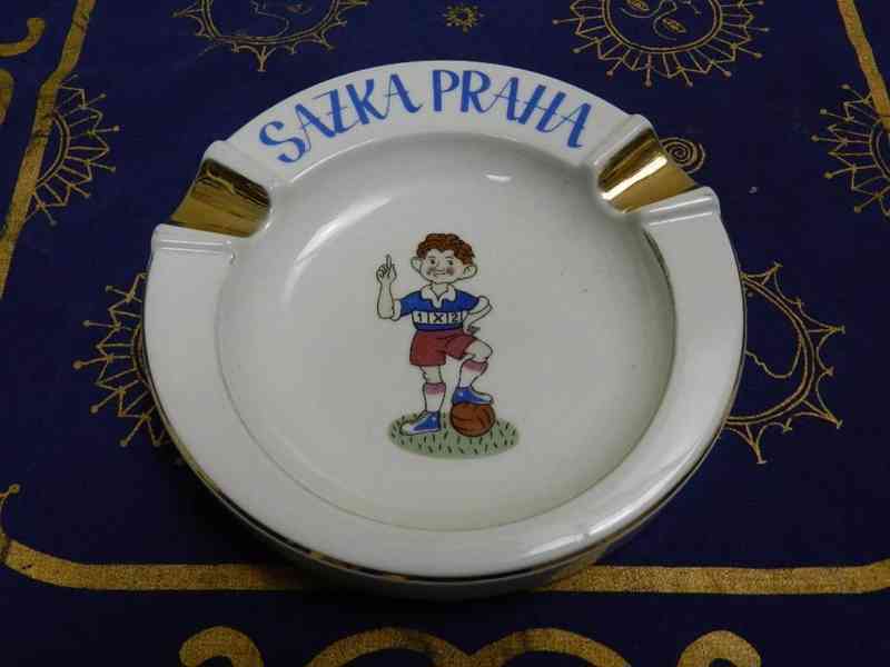 Porcelánový reklamní popelník Sazka Praha - Stará Role, kolem 1950.