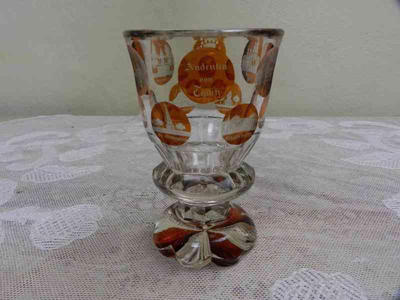 Luxusní masivní Biedermeier Pohár, Teplice a okolí, Čechy, datace 1836, dále 10 rytých miniatur.