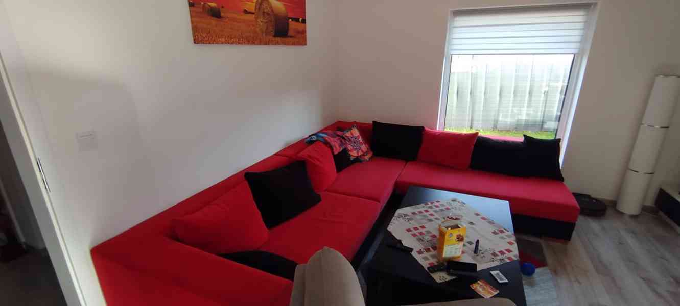 Prodám zachovalou sedací soupravu + černý taburet. Je složena ze 3. částí, kde každá část je 160 cm dlouhá a 108 cm široká. Cena 3 000 Kč.