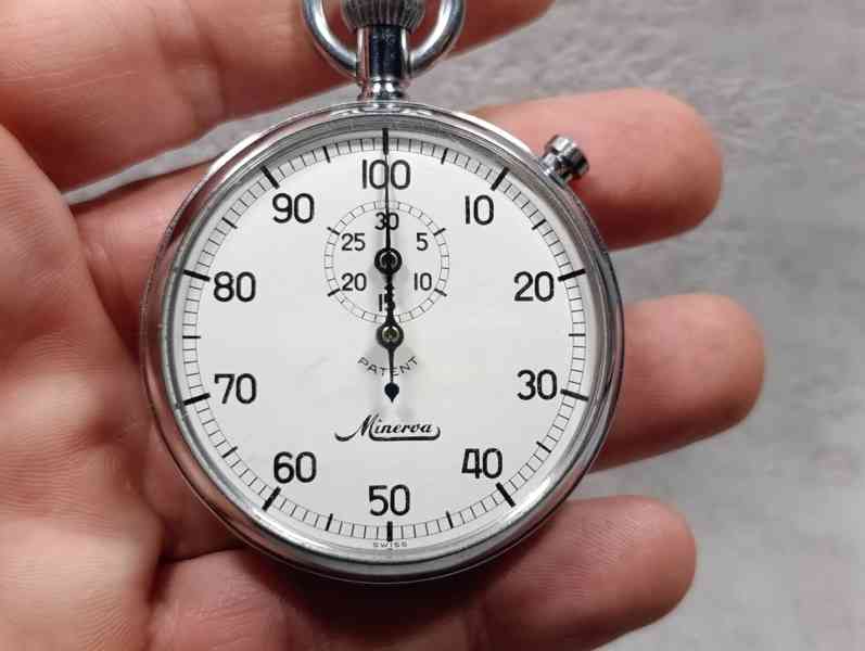 Nabízím originální kapesní stopky Minerva – Swiss Made v pěkném a plně funkčním stavu.