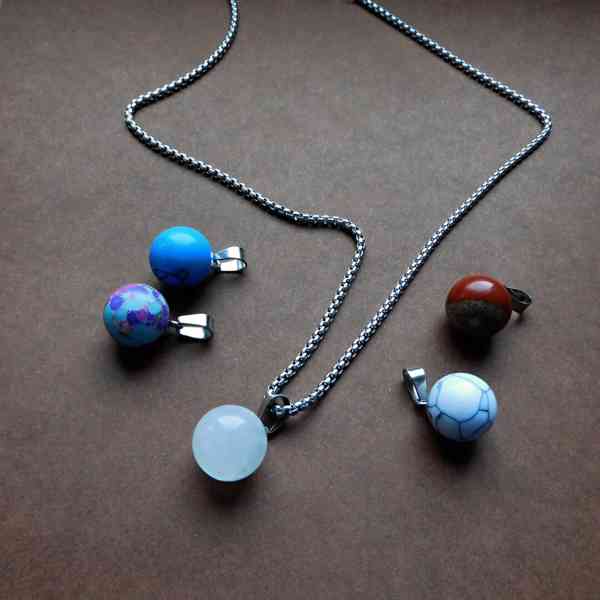 Nerezový silnější řetízek – tentokrát malými kuličkami kamenů. Cena za 1 přívěsek. Vyberte si.....