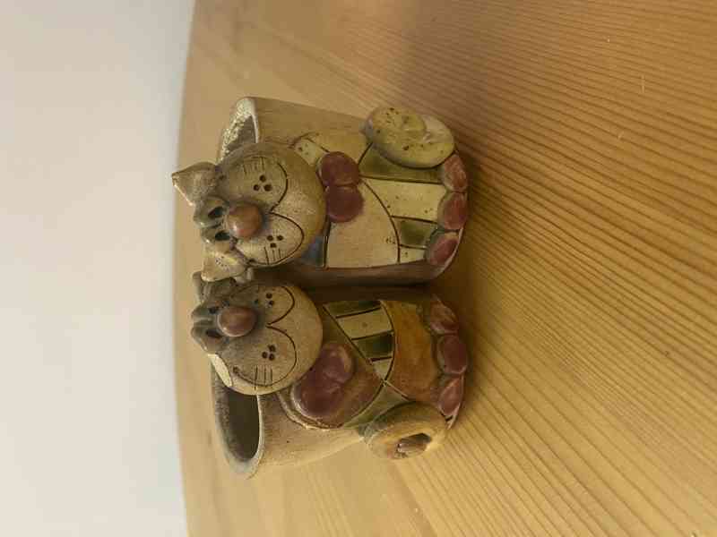 Nabízím sadu dvou roztomilých keramických květináčků s motivem koček. Vhodné na malé květiny, sukulenty nebo jen jako dekorace.