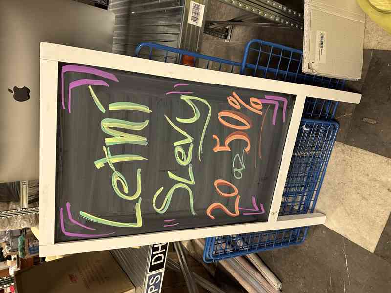 Prodám reklamní A-stojan vhodný pro popis křídou nebo křídovými popisovači. Ideální pro denní nabídky, akce a navigaci zákazníků.
