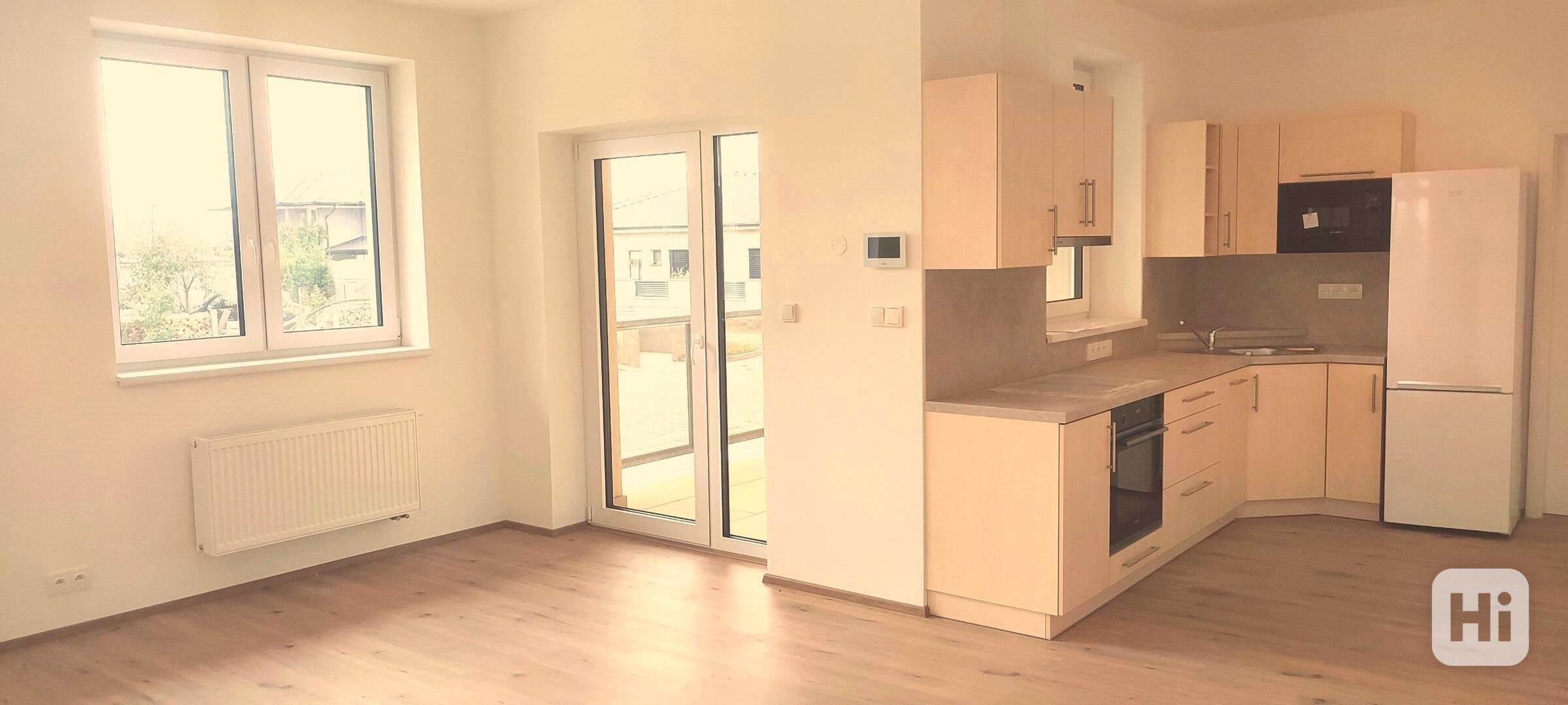 Interiér je navržen s důrazem na funkčnost. Z předsíně vstoupíte do vzdušného obývacího pokoje s kuchyňským koutem, vybaveným kvalitní linkou a vestavnými spotřebiči. Velkou předností prostoru je krytá terasa, která díky svému rozměru působí téměř jako další místnost a poskytuje perfektní zázemí pro odpočinek i posezení s přáteli.