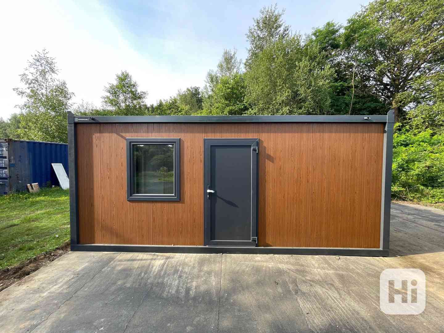 Obytný modulární kontejner 6 × 2,4 m – vhodný na zahradu nebo kancelář.