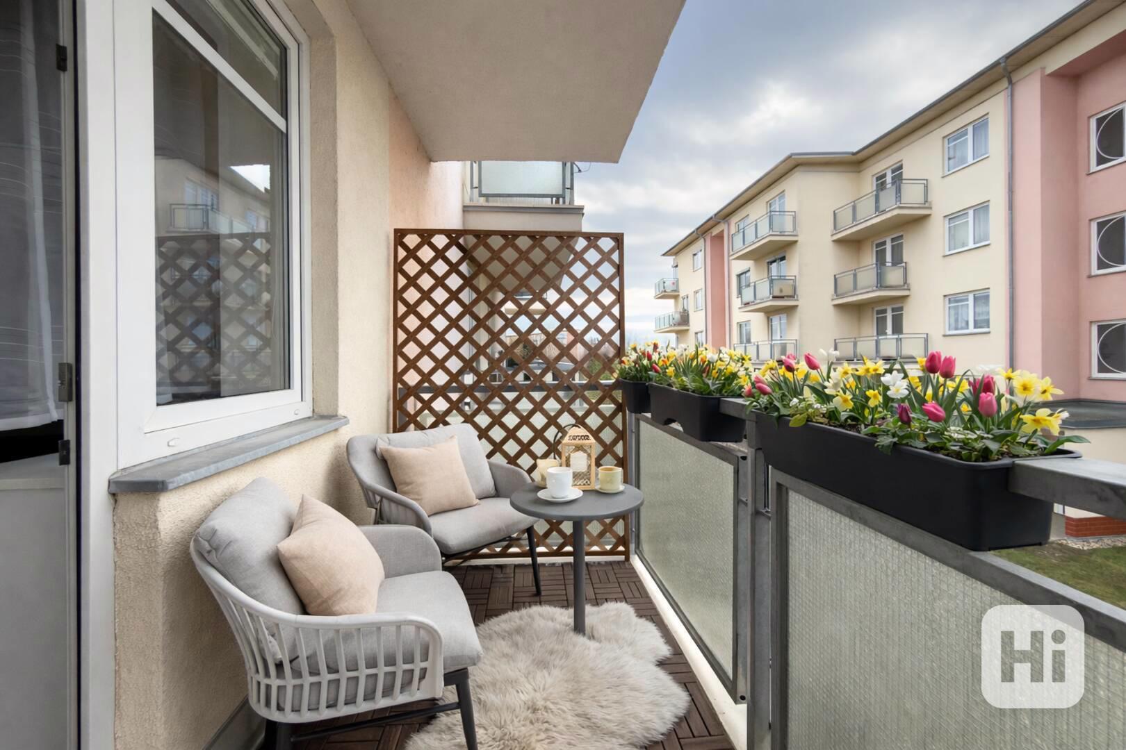 Byt nabízí dvě navzájem neprůchozí ložnice – obě skutečně plnohodnotné, bez kompromisů v metrech. Hlavní ložnice disponuje vlastním balkónem, druhý balkón je přístupný z obývacího pokoje. Byt tak nabízí dva samostatné venkovní prostory, které zvyšují komfort každodenního bydlení.