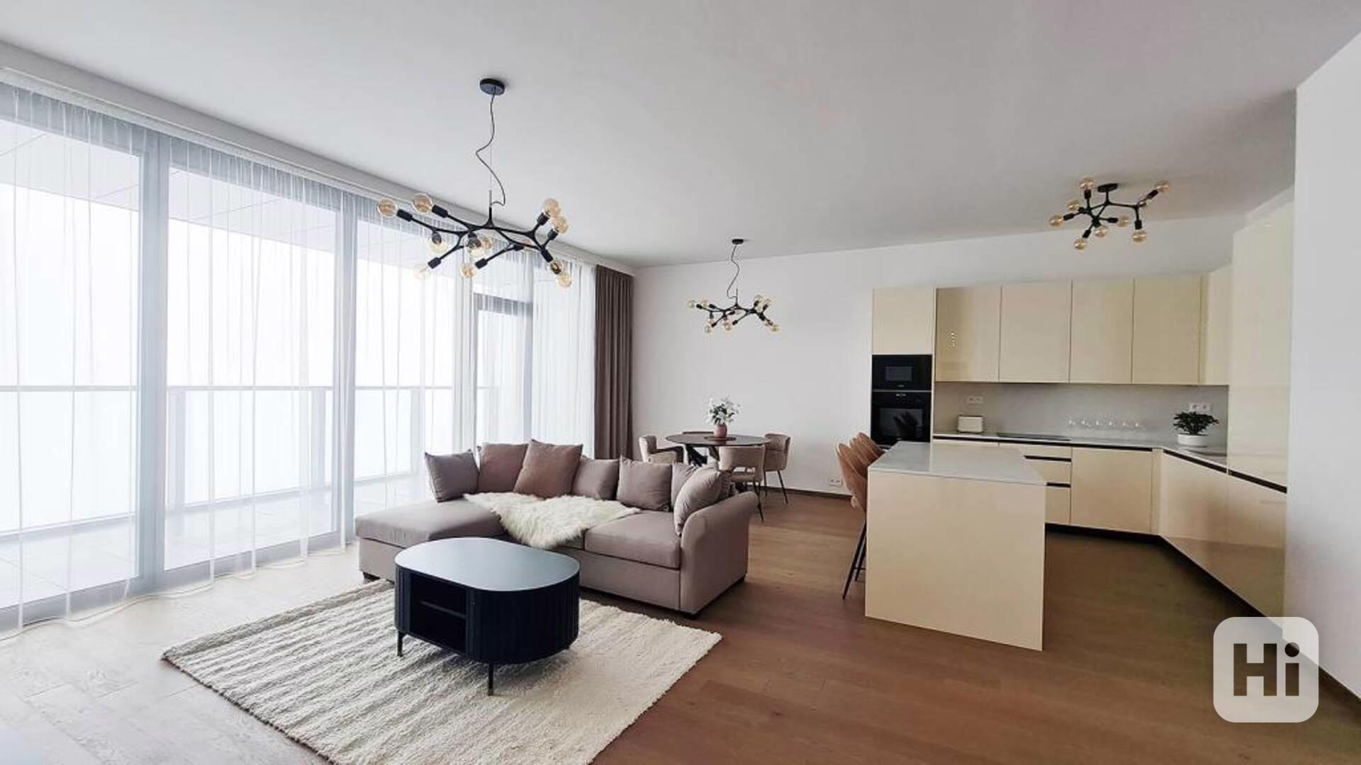 Byt se nachází ve vyšším patře reprezentativního domu s recepcí a nepřetržitou ostrahou. Nabízí promyšlenou dispozici, kvalitní materiály a moderní vybavení. Obytný prostor s kuchyní a jídelnou plynule navazuje na prostornou terasu. Dvě samostatné ložnice mají vlastní lodžie a poskytují dostatek soukromí.