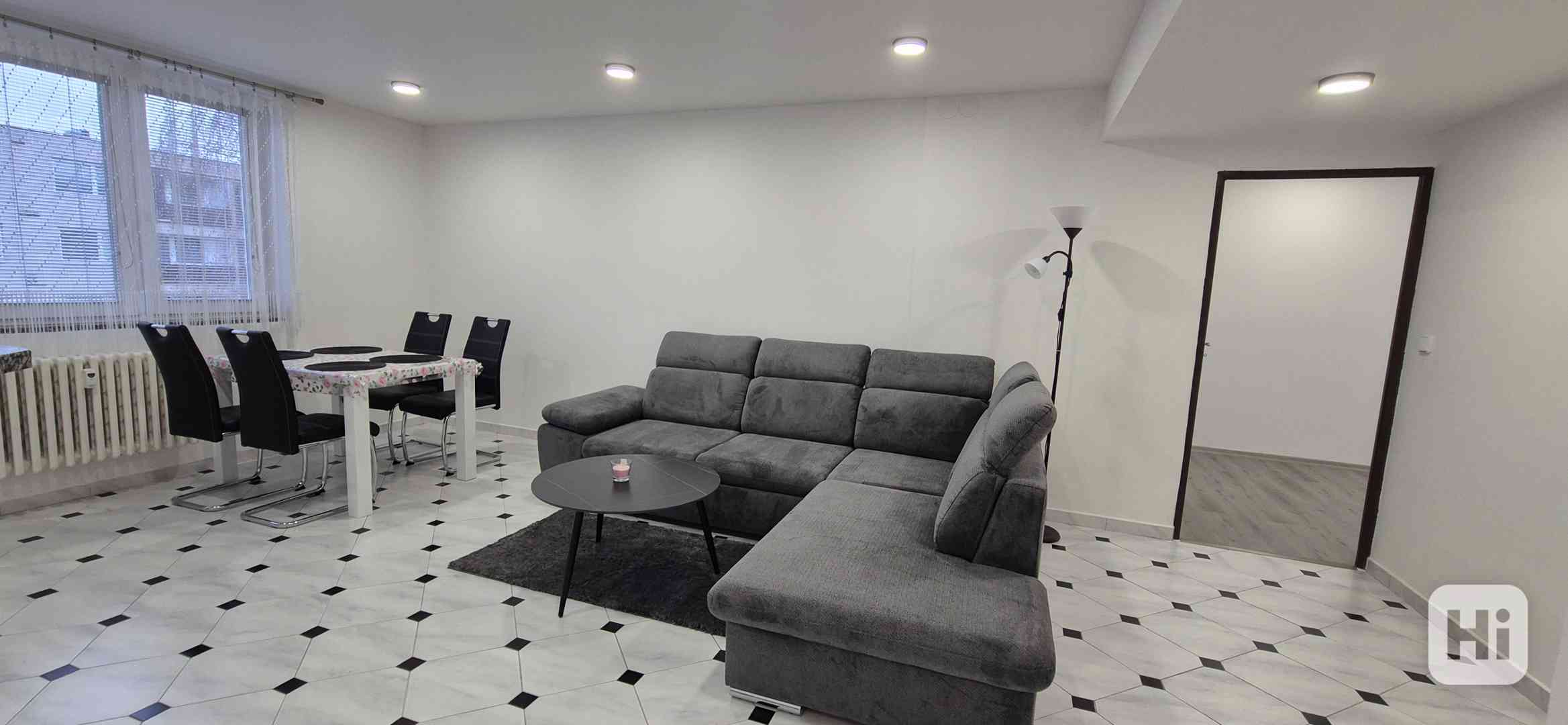 Byt prošel celkovou rekonstrukcí. V bytě jsou nové rozvody vody, odpadů, elektřiny, snížené a zateplené stropy. V bytě se nacházejí nové vchodové dveře a všechny nové pokojové dveře, dále nově zrekonstruovaná zděná koupelna včetně proskleného sprchového koutu, pračkou a umyvadlem. Postupně vcházíte do obývacího pokoje, který je spojený s kuchyní a moderním barem. V obývacím pokoji se nachází nová sedací souprava s konferenčními stolky a lampou. Následuje nový bílý jídelní stůl se židlemi. Moderní kuchyňská linka s výklopy vyrobená na zakázku, osazená zcela novými spotřebiči (myčka, lednička, trouba, indukční deska, digestoř, mikrovlnná trouba a led podsvícení pod linkou). Z obývacího pokoje se dostanete do dvou pokojů - jeden je uzpůsobený jako ložnice, s novou dubovou postelí z masivu včetně nočních stolků, matrací a vestavnou skříní. Druhý je zatím prázdný, může sloužit jako dětský pokoj či pracovna, kde je nová vestavná skříň. Každý z těchto pokojů má balkon. Byt má prostornou předsíň, kde je další vestavná skříň včetně botníku a zrcadla. Součástí bytu je prostorný sklep. Poloha nemovitosti v centru obce zajišťuje vynikající dostupnost nákupu, autobusu a vlaku. K bytu je také k dispozici parkování. Ohřev vody a vytápění jsou zajištěny centrálně. Byt je nekuřácký a bez domácích mazlíčků. Byt je k dispozici od 1. března 2026 a cena pronájmu činí 15 000 Kč měsíčně. K ceně nájemného je za potřebí započítat cenu za služby, které zahrnují teplou a studenou vodu, teplo a elektřinu dle Vaší spotřeby. Vratná kauce činí dva nájmy včetně služeb.