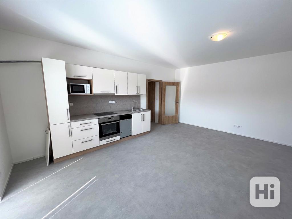 Za vstupními dveřmi se ocitneme ve velmi prostorné chodbě o velikosti cca 5,60 m2, ze které se vchází do všech samostatných místností v bytě. Toaleta je zde samostatná o výměře cca 1,85 m2, která disponuje WC a umyvadlem. V koupelně o výměře cca 4,65 m2 je sprchový kout, umyvadlo se skříňkou, vývod na pračku a elektrický boiler zajišťující ohřev vody. Ložnice o výměře 12,50 m2 je nevybavená. Hlavní místností v bytě je obývací pokoj s kuchyní o celkové ploše cca 24,52 m2. Kuchyňský kout je velmi vkusně zařízený nejen pěknou kuchyňskou linkou, ale samozřejmostí jsou i spotřebiče, myčka, digestoř, trouba, sklokeramická deska. Dominantou této místnosti je úžasná prostorná terasa o celkové ploše cca 11 m2.