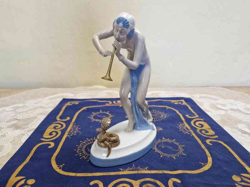 Hezká Art Deco porcelánová plastika, Dívka s Hadem - Royal Dux, 1 pol. 20 stol.