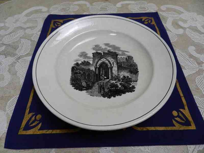 Dekorační velmi starý kameninový Talíř s hradem - A. Nowotny Altrohlau, Stará Role, kolem 2 třetiny 19 stol.