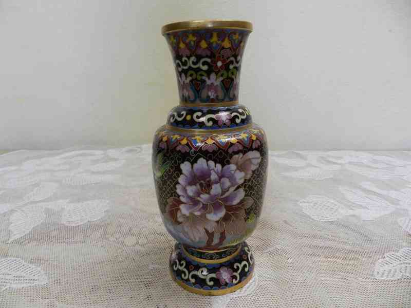 Krásná bohatě zdobená orientální Váza s ptáčkem a motýlem Cloisonne, 19 stol.