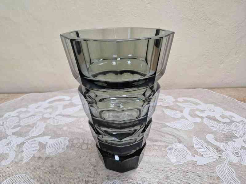 Masivní broušená váza, větší velikost, kouřové sklo - Moser Karlovy Vary, značeno zespodu Moser, 2 pol. 20 stol.