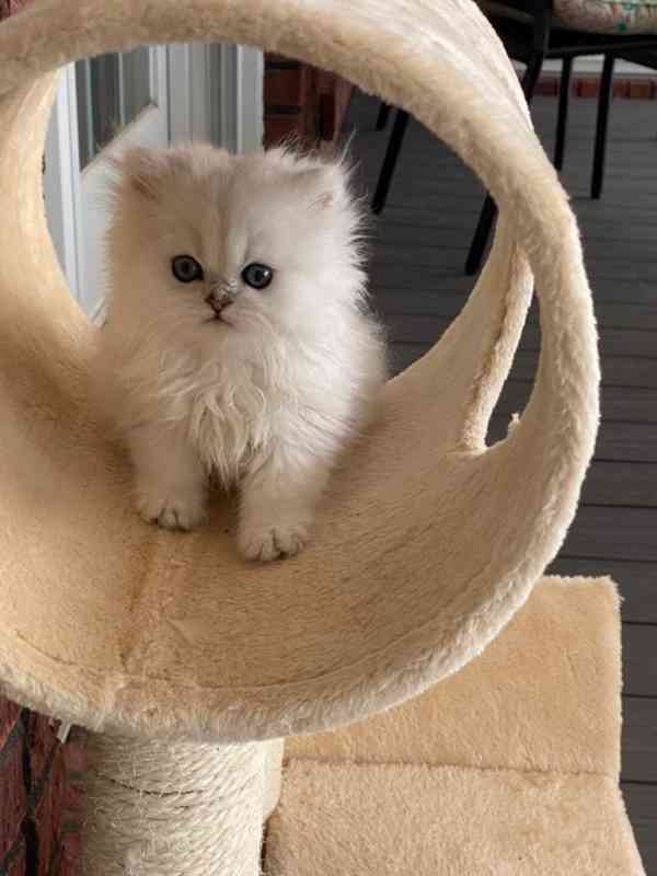 Děsivý Koťata koťátka a samice skotského foldu. Máme jednu fenku bluepoint (fialová kapela). Naše kočky a koťata jsou chovány u nás doma, jako součást naší rodiny a bez klecí. Toulají se po domě a jsou velmi přítulní, společenští a milí.