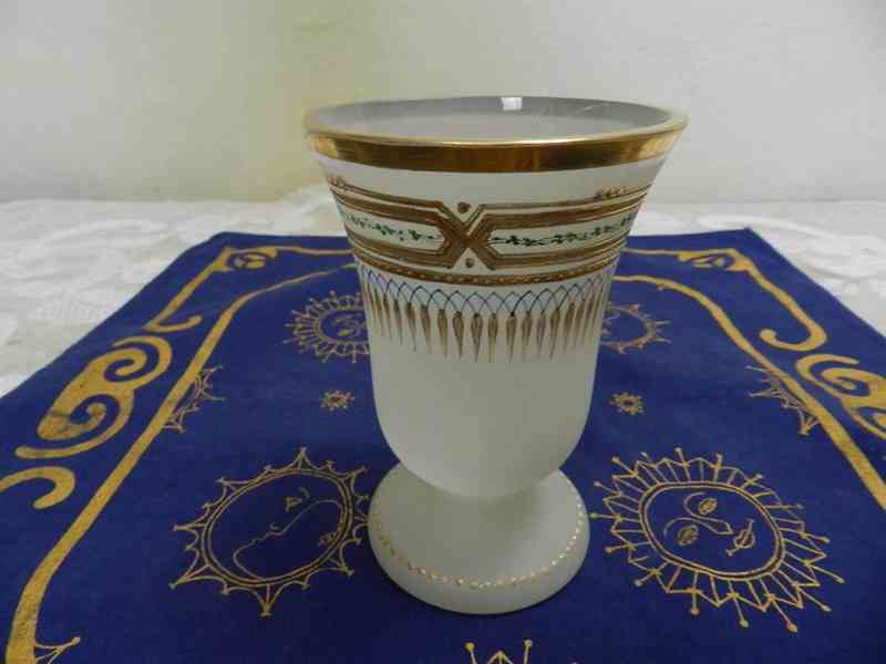 Krásná velmi stará malovaná a zlacená Sklenice, mléčné sklo, Čechy.