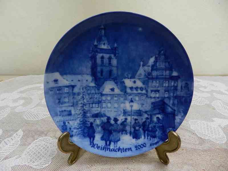 Krásný sběratelský dekorační Talíř, kobaltová modř, vánoční motiv 2000, limitovaná edice - Signováno, Berlin Německo.