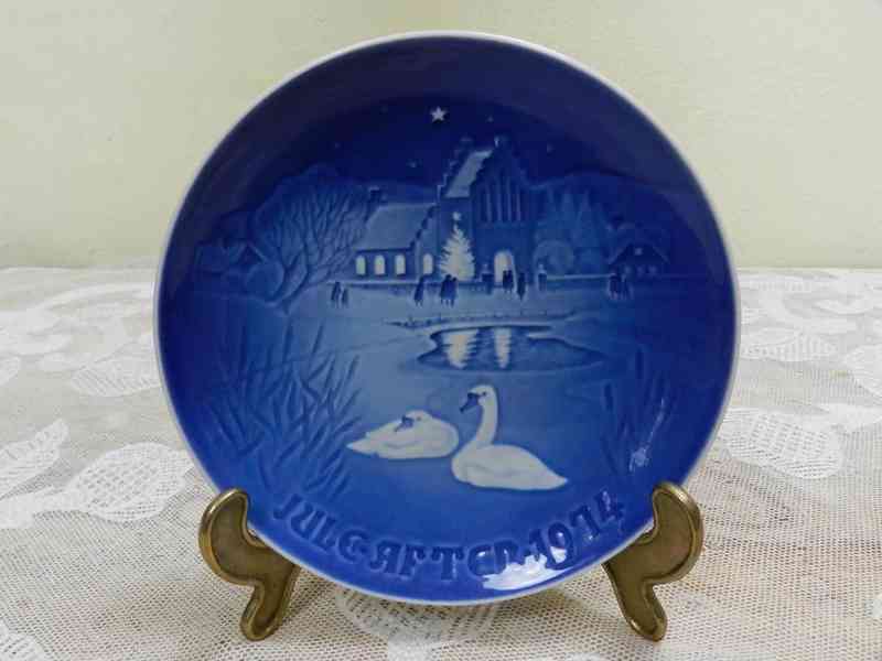 Krásný sběratelský dekorační Talíř, kobaltová modř, vánoční motiv, 1974 - Copenhagen Grondahl, Dánsko.