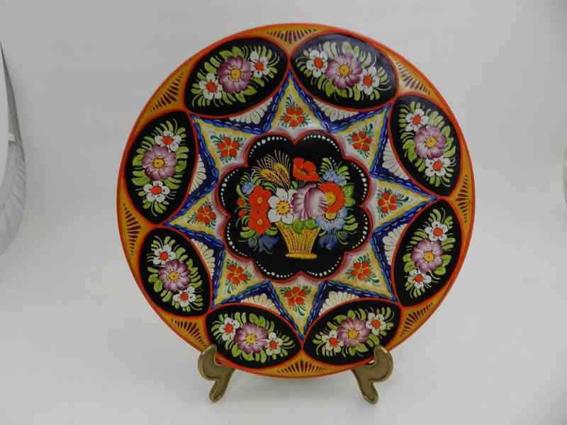 Krásný starý bohatě malovaný větší Talíř - Klenčí, 1 pol 20 stol.