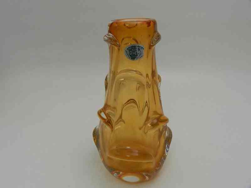 Hezká Autorská oranžová Váza z hutního skla - Značeno štítkem, Bohemia Czechoslovakia, 2 pol. 20 stol.