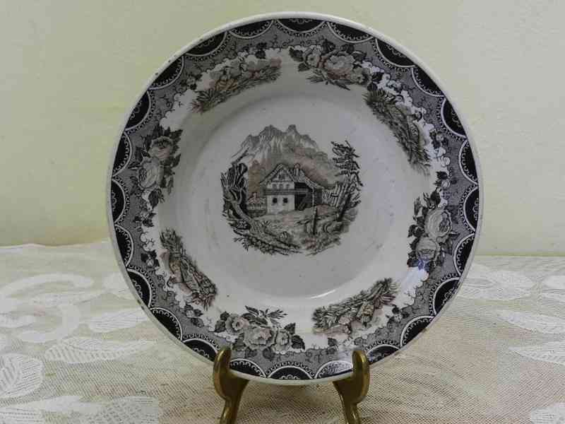 Dekorační velmi starý Talíř, hnědý - A. Nowotny Altrohlau, Stará Role, kolem 2 třetiny 19 stol.