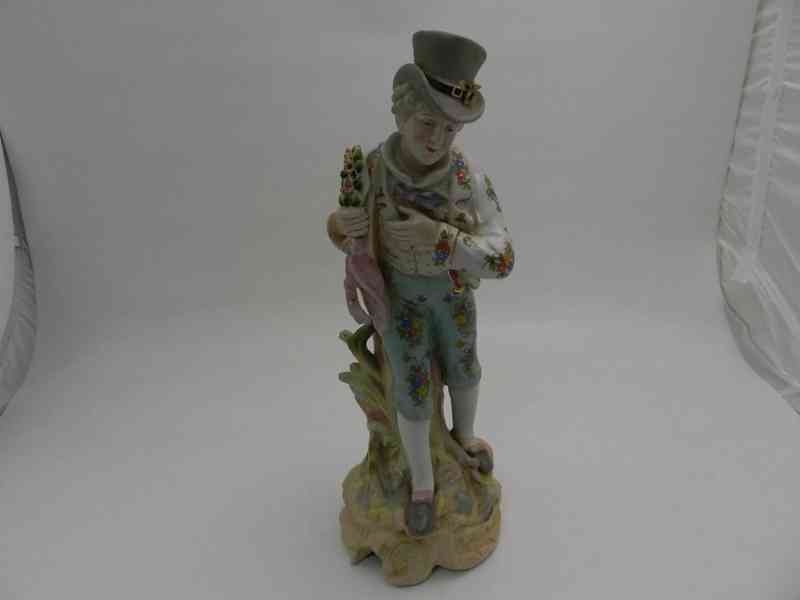 Hezká větší porcelánová ručně malovaná soška, Kavalír - Značeno, kolem 1 třetiny 20 stol.