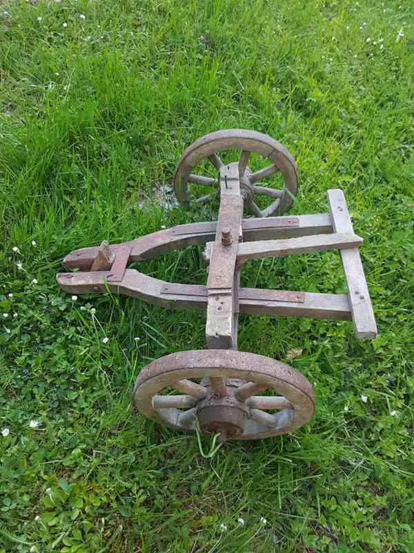 Prodám přední nápravu čtyřkoláku s loukoťovými koly. Plně funkční - možno použít pro výrobu nové kárky, nebo jako dekoraci. šířka 57 cm, délka 53 cm, průměr kola 26 cm. Osobní předání na Praze 3, nebo zaslání kurýrní službou. Volejte 770 630 523, nebo pište na morgiana007@gmail.com