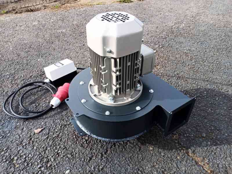 Transportní ventilátor V4600 - pro dopravu hoblin, pilin, zplodin ze svařování, vzduchu apod. do vzdálenosti až 20 m. Lze použít samostatně, nebo jako součást jiných strojů. Robustní provedení pláště, pevný svařovaný rotor vrtule z tloušťky 4mm, lopatky 3mm. Montáž na zem, zeď, nebo rám stroje pomocí úchytných otvorů ve spodní části ventilátoru. Podtlak na vstupu 2400 Pa, odsávací kapacita 4600 m3/hod., sací hrdlo průměr 250mm, výstup 160x160mm. Nový typ hliníkového kvalitního přírubového elektromotoru 3kW - 2900 ot/min. Přívod 16A-5kolík.